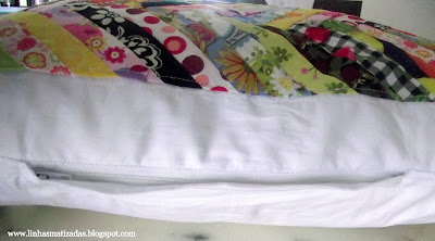 acrílica e fiz o quilt reto, apenas seguindo as costuras. O fechamento, com um